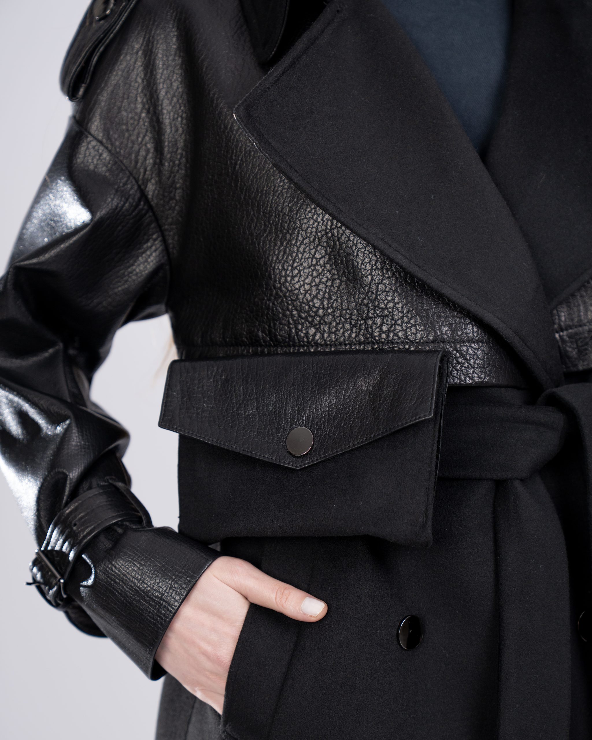 cashmere and leather mixed black coat BNC-56