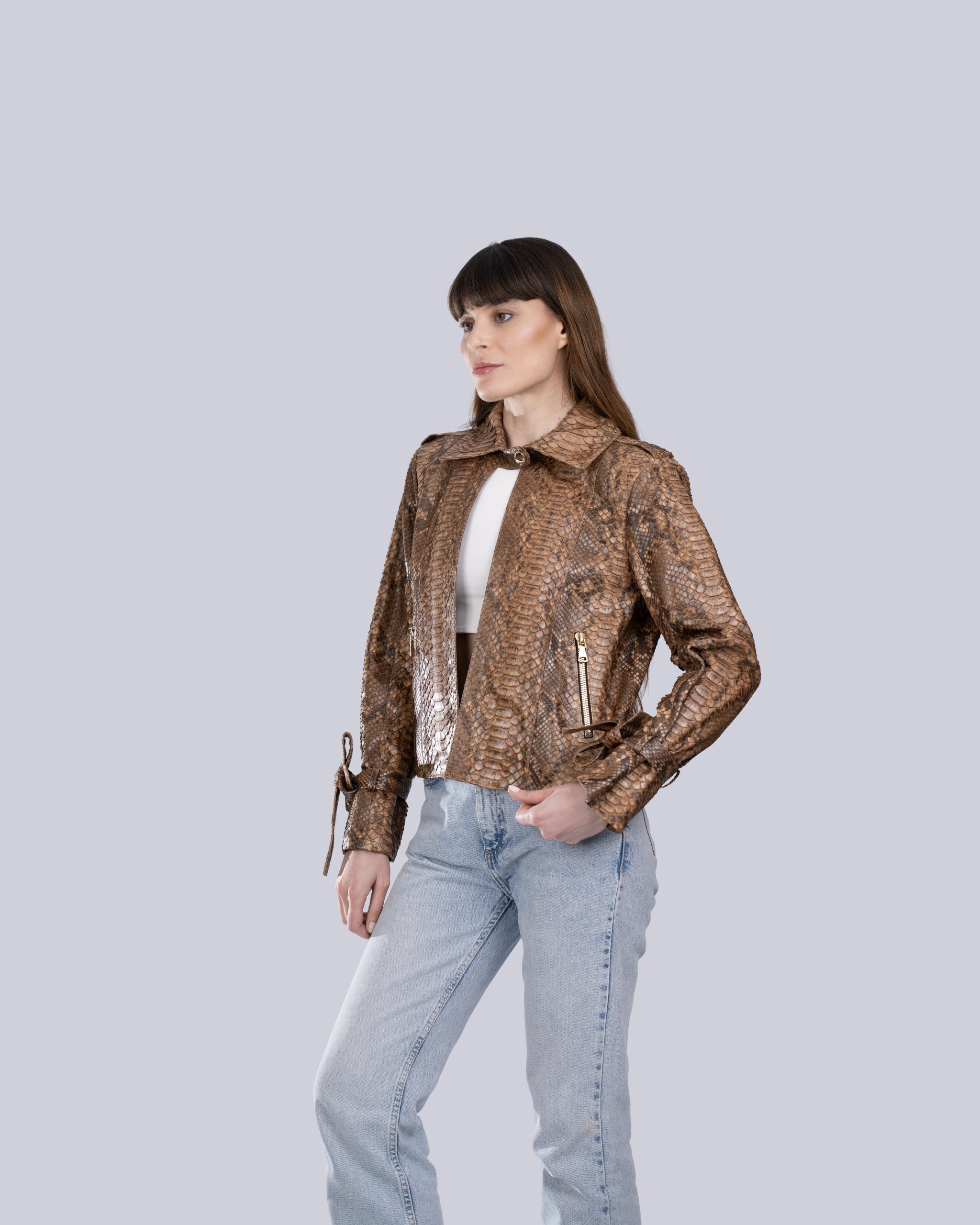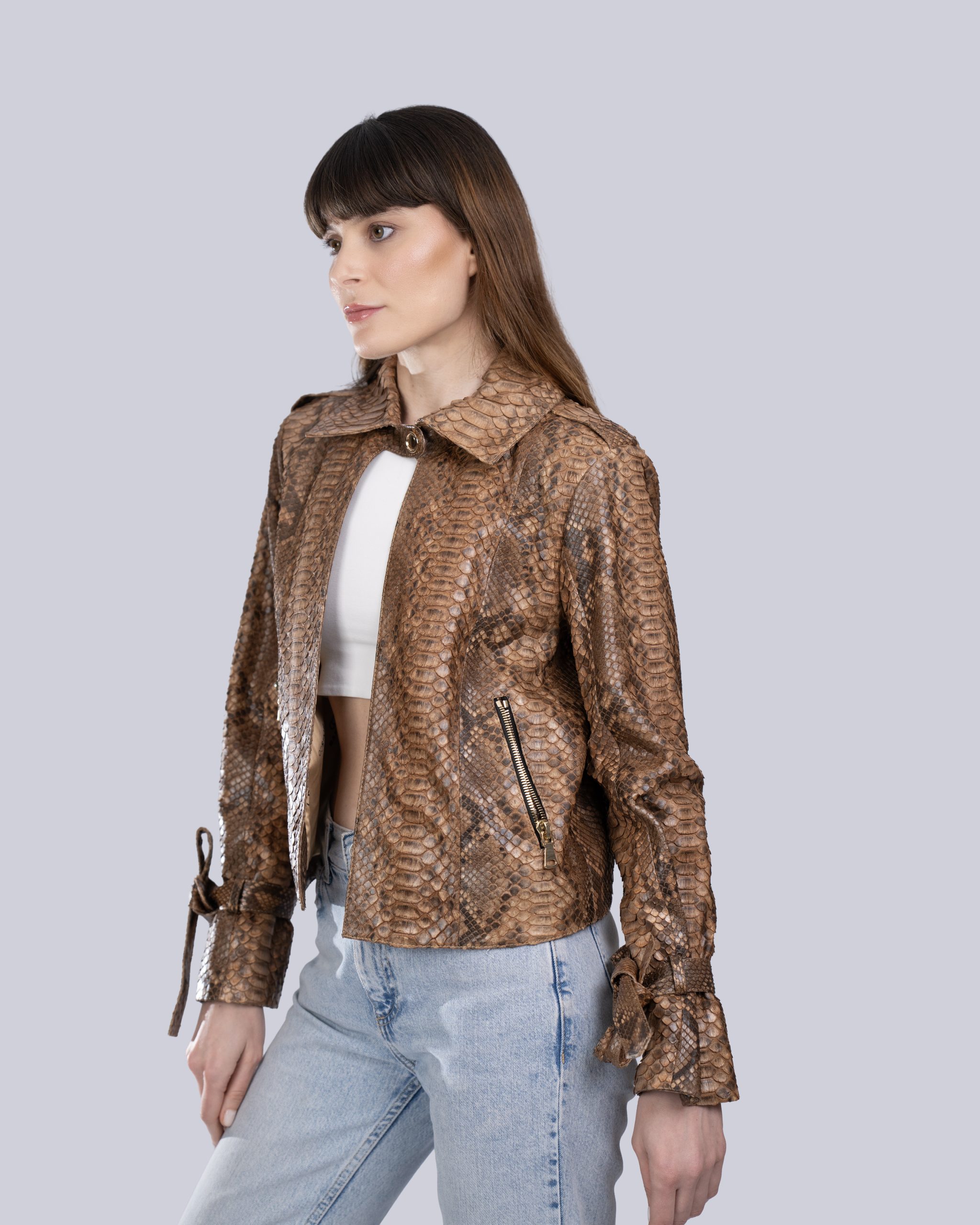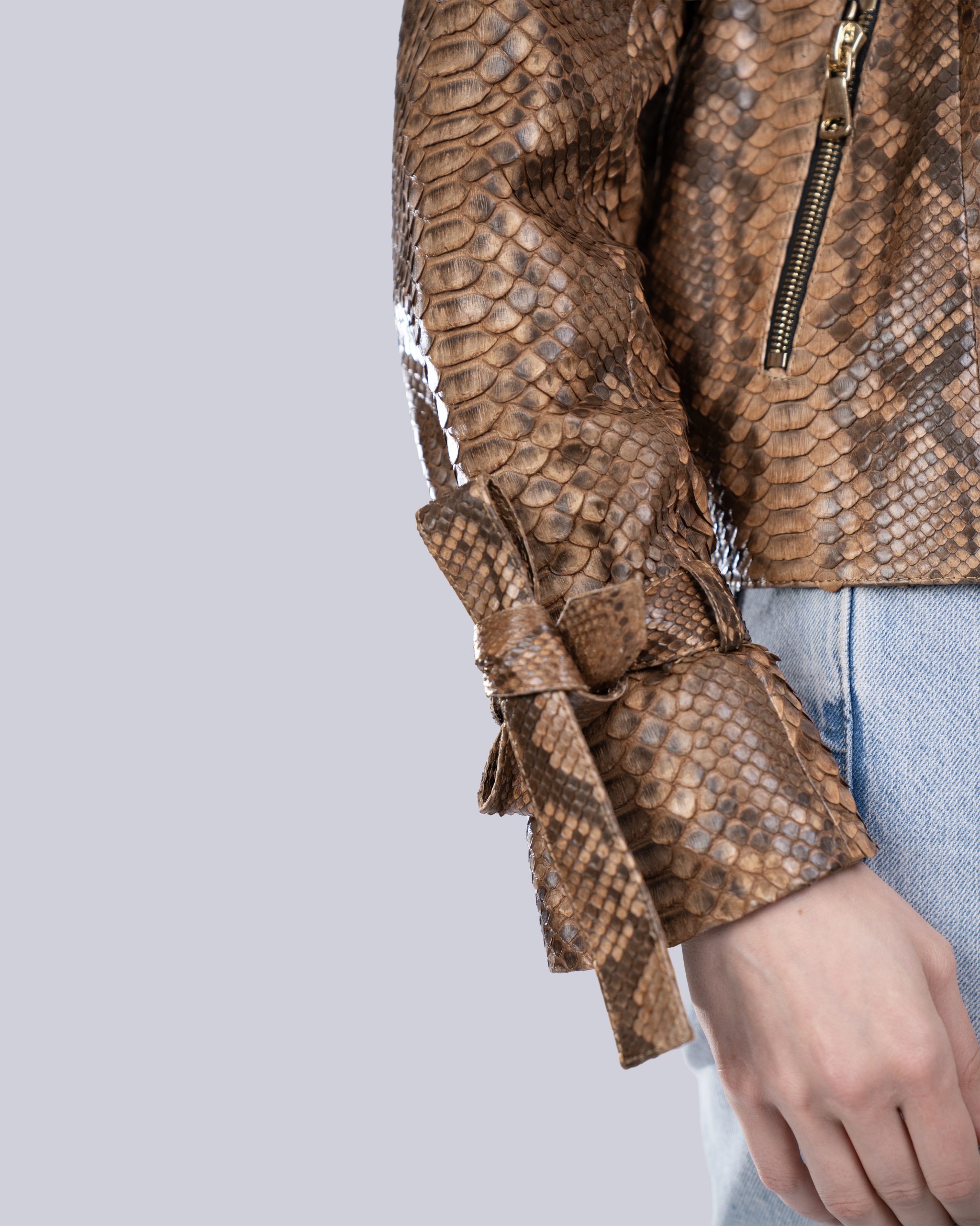 This custom-designed snakeskin jacket will become an essential part of your wardrobe with its sophisticated look and modern cut. It offers both elegance and boldness.