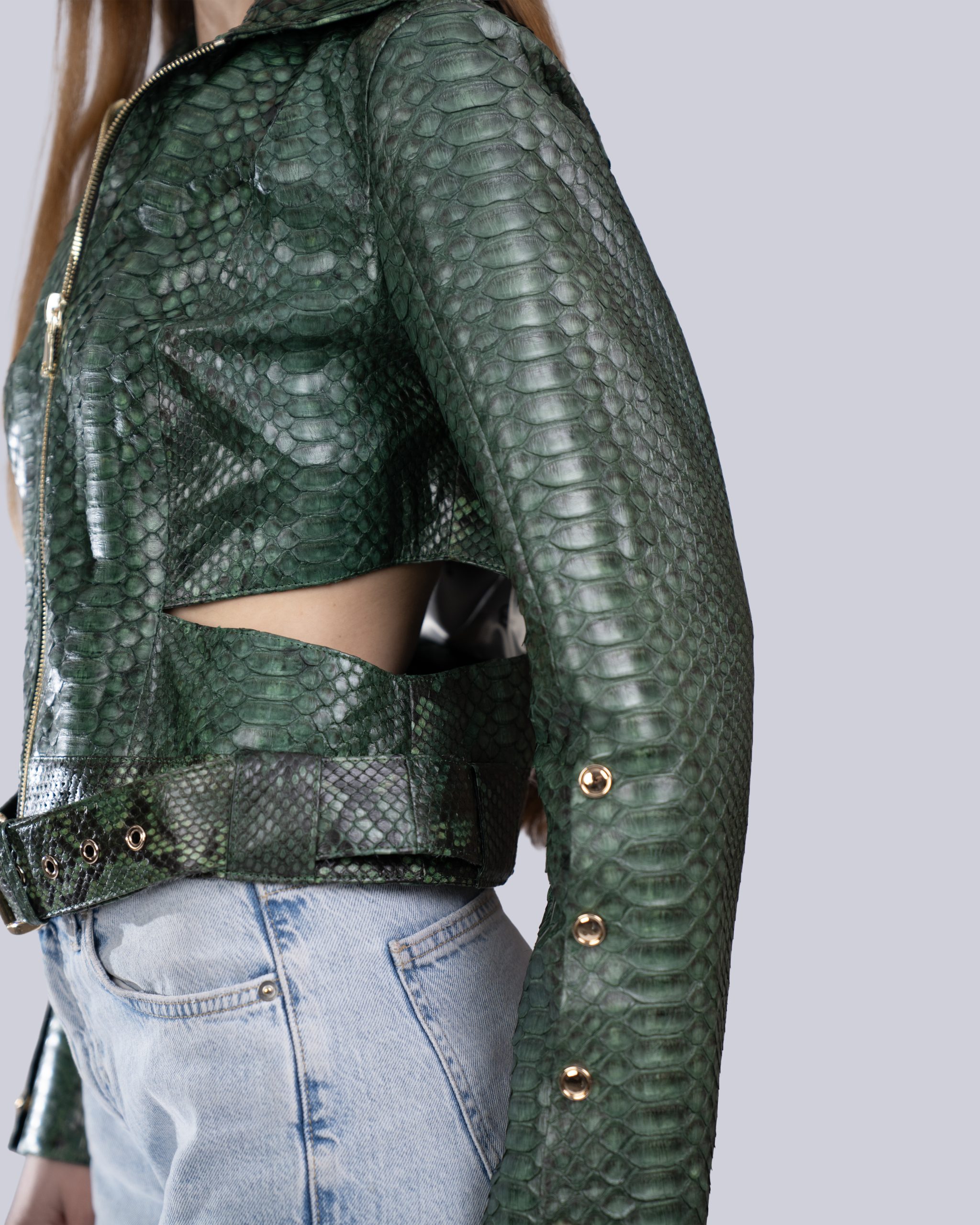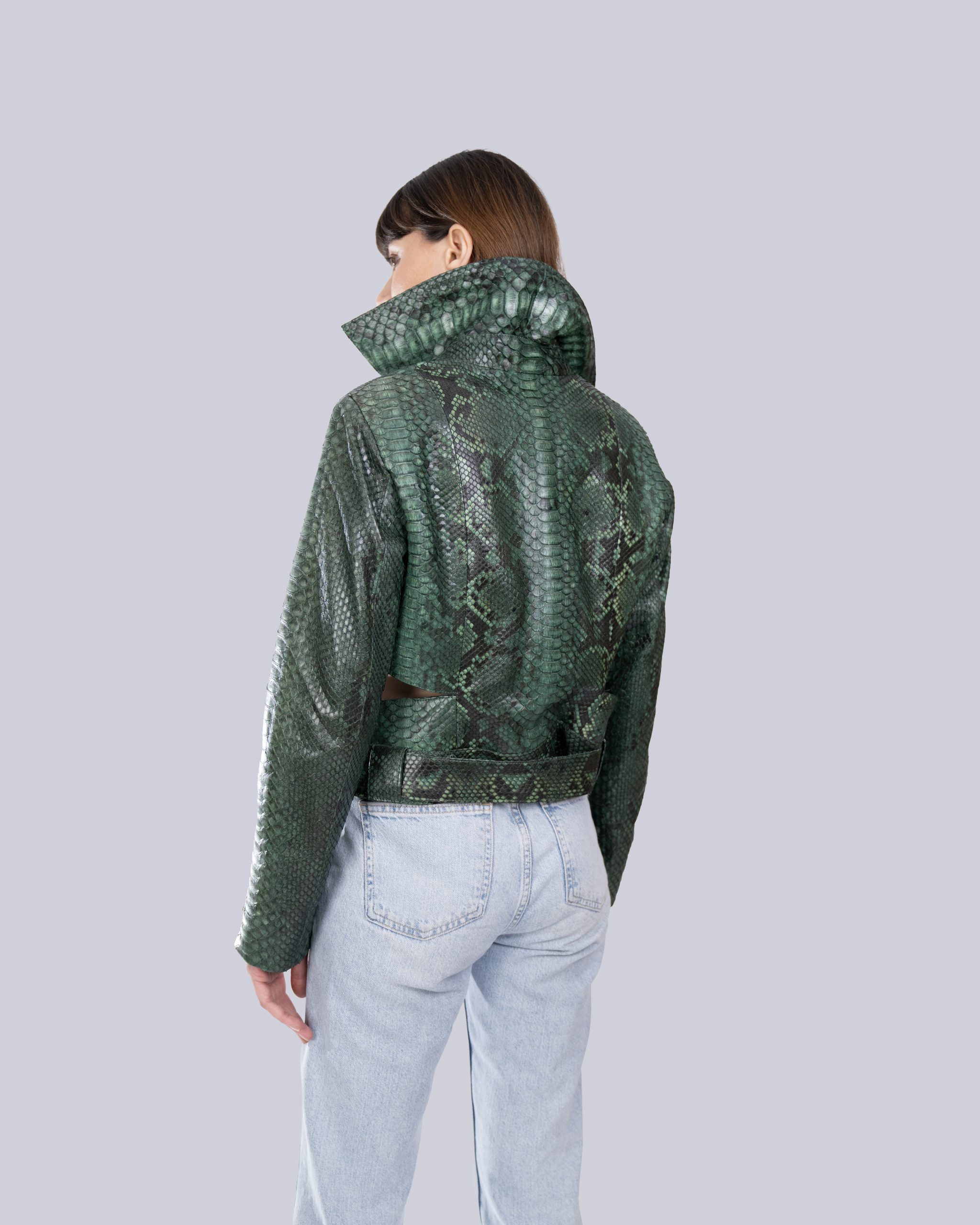Эксклюзивная дизайнерская куртка из змеиной кожи станет неотъемлемой частью вашего гардероба благодаря изысканному внешнему виду и современному крою. Он предлагает элегантность и эффектность одновременно.